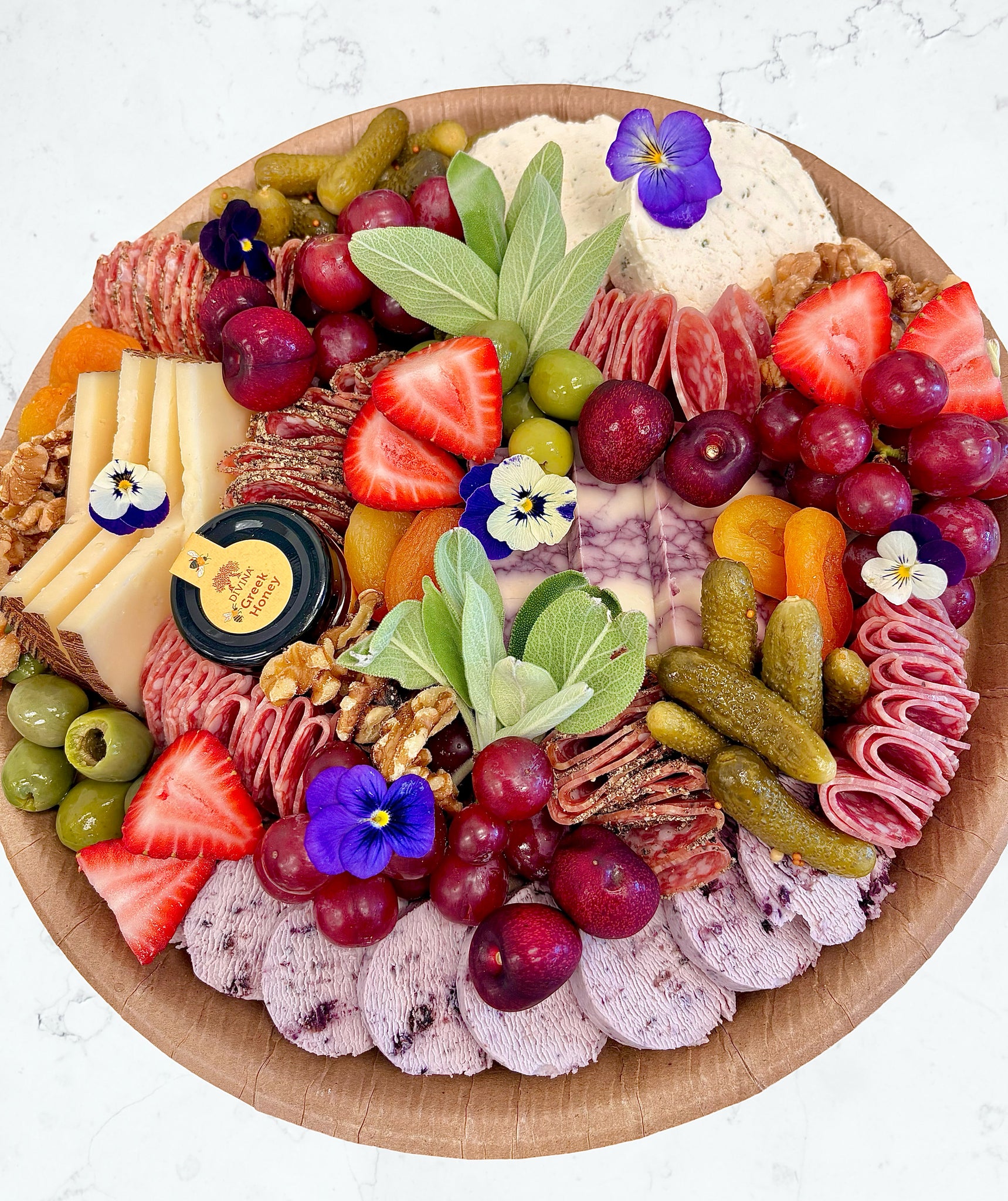 We provide small spoons, tongs, honey dippers, & cheese menu. Plates and napkins are not provided.